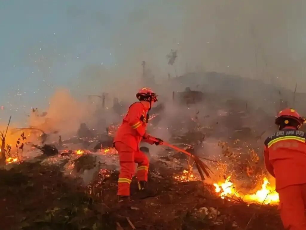 消防员到达现场后发现,起火地点位于长通村集体林场,过火面积约5亩。由于天干物燥,地面枯树叶燃烧速度较快。现场指挥员决定采取“先控制、后消灭”的战术,先用水枪扑灭树干明火再对地面燃烧的枯树叶进行全面清理,重点排查树根、草丛等隐蔽区域的余火防止复燃。经过20分钟的紧张处置,现场明火被成功扑灭。